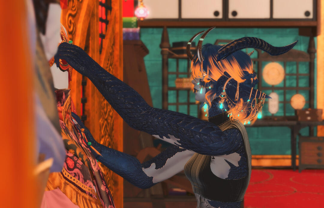 Since Nithe lost their memories in the past, their path to connecting with themself started with relearning the passion & muscle memory of crafting fine clothes & goldsmithing! Reconnecting with their roots in the bazaar of Radz-at-han, the "Jewel of Radz-at-han" is making great strides in their crafting endeavors and with success has opened up a small shop to continue to hone their skill further for whatever clients may need or desire for their look.Gold & jewelry crafting is something dear to them, but also being quite the renowned fighter & dragoon even without a soul stone. They'd coin it something akin to-